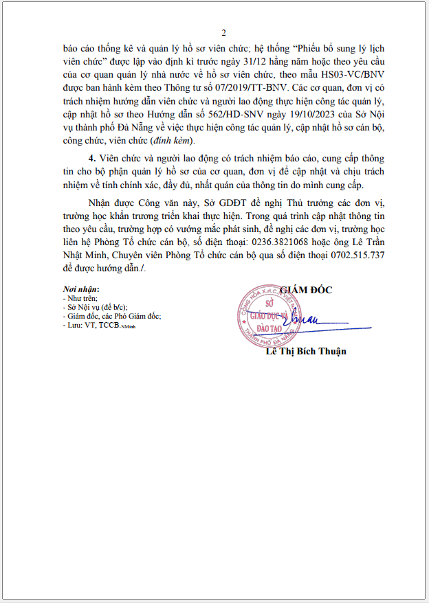 Qua theo dõi, hiện nay các đơn vị, trường học đã tích cực và thực hiện theo đúng tiến độ. Tuy nhiên, vẫn còn nhiều trường thông tin về viên chức và người lao động tại các đơn vị, trường học chưa được cập nhật trên phần mềm Cơ sở dữ liệu CBCCVC, nhiều thông tin chưa được cập nhật đúng theo thực tế. Để phục vụ công tác giao biên chế, quản lý đội ngũ CBCCVC và đảm bảo tiêu chí “Đúng – Đủ – Sạch – Sống” của dữ liệu CBCCVC khi kết nối, chia sẻ dữ liệu với CSDLQG về CBCCVC, Sở Giáo dục và Đào tạo (GDĐT) đề nghị Thủ trưởng các đơn vị sự nghiệp công lập lưu ý một số nội dung theo văn bản số 1917/SGDĐT-TCCB (Văn bản đính kèm).