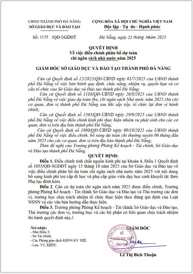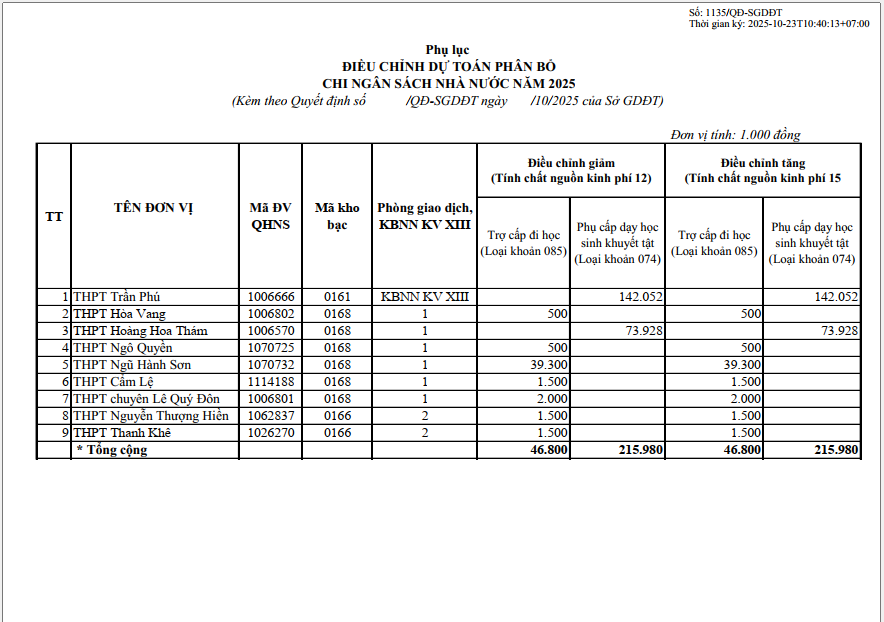 3. QUYẾT ĐỊNH ĐIỀU CHỈNH PHÂN BỔ DỰ TOÁN CHI NGÂN SÁCH NHÀ NƯỚC NĂM 2025