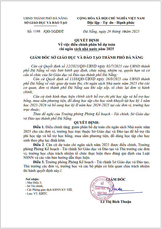 • QUYẾT ĐỊNH VỀ VIỆC PHÂN BỔ DỰ TOÁN CHI NGÂN SÁCH NHÀ NƯỚC NĂM 2025 (29/09/2025)