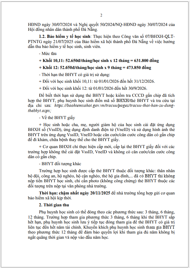 Nhà trường đề nghị quý phụ huynh theo dõi kỹ thời hạn, chuẩn bị đầy đủ hồ sơ và phối hợp cùng nhà trường để đảm bảo quyền lợi cho học sinh.