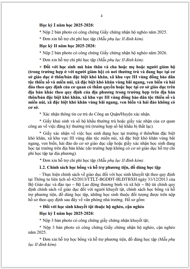 THÔNG BÁO CÁC KHOẢN THU, CHÍNH SÁCH HỖ TRỢ CHI PHÍ HỌC TẬP, HỌC BỔNG VÀ HỖ TRỢ PHƯƠNG TIỆN, ĐỒ DÙNG HỌC TẬP NĂM HỌC 2025-2026